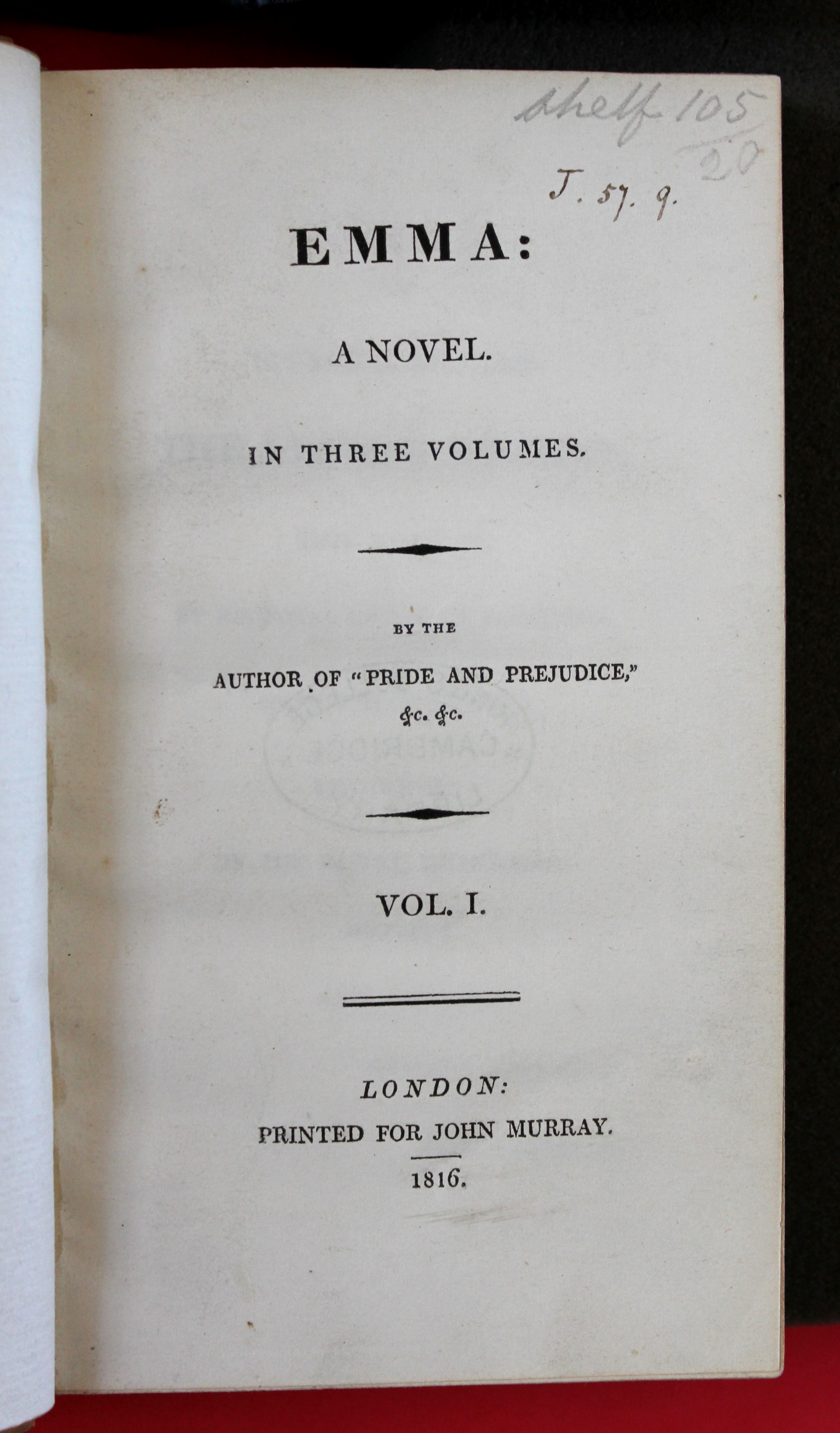 This copy of the first edition of Emma belonged to King’s Provost George Thackeray (1777–1850).