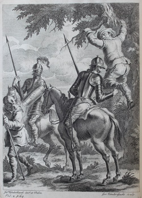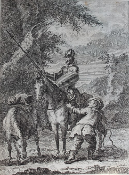 Plate facing page 100 from volume one of The Life and Exploits of the Ingenious Gentleman Don Quixote De La Mancha, translated from the original Spanish of Miguel Cervantes de Saavedra by Charles Jarvis, London, 1742. Shelfmark: Glendinning.98/1