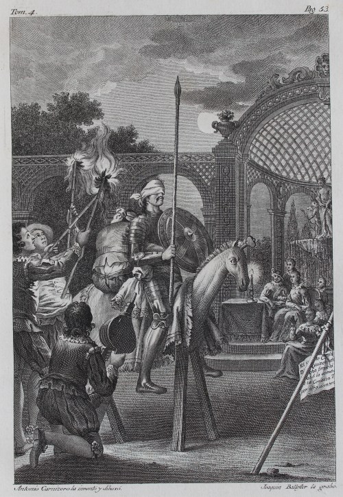 Plate facing page 52 from volume four of El ingenioso hidalgo Don Quixote de la Mancha by Miguel de Cervántes Saavedra, Madrid, 1780. Shelfmark: L.2.16