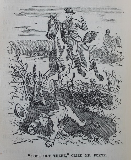 Our Local Collection includes the comic story of a Cambridge freshman, Samuel Golightly, who gets into various scrapes and adventures during his first year at the University. Below, Samuel participates in a drag hunt, where hounds follow a scent trail rather than a fox. His horse is somewhat too enthusiastic in pursuit, and he ends up tumbling to the ground, narrowly avoiding being trampled by another horse!