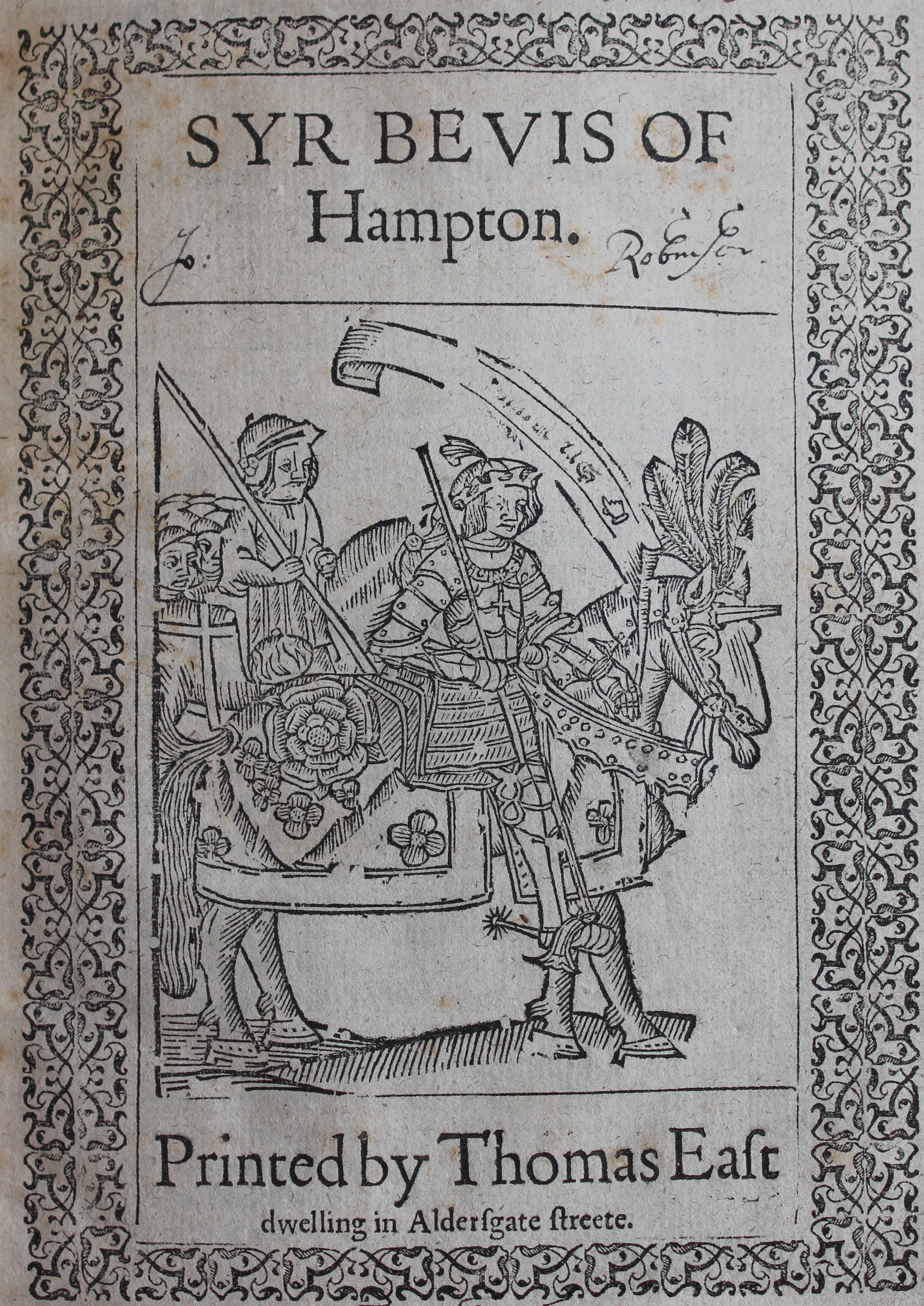 Title-page of Syr Bevis of Hampton, London, 1585. Shelfmark: M.29.13