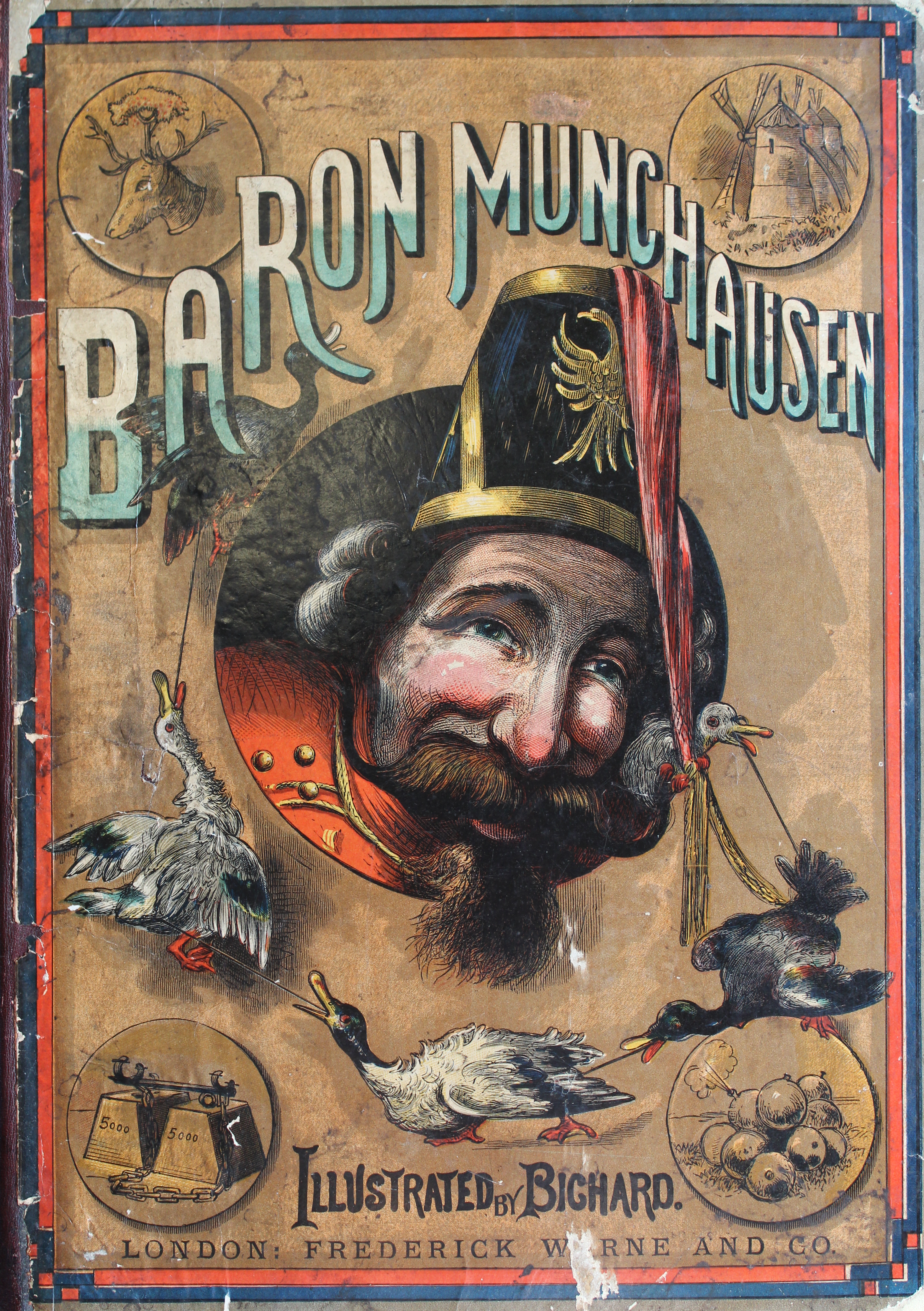 Cover of The Adventures of Baron Munchausen, illustrated by A. Bichard, London, c. 1880-1900? Shelfmark: Rylands.C.BAR
