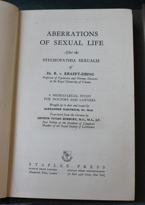 Richard von Krafft-Ebing, Aberrations of sexual life (London, 1951) (Shelfmark: Store K Burb)