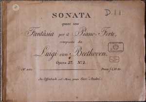 Sonata quasi una fantasia per il piano-forte [Moonlight Sonata] (Offenbach: André, [ca. 1811]). Shelfmark: Box D.1.1. Title page.