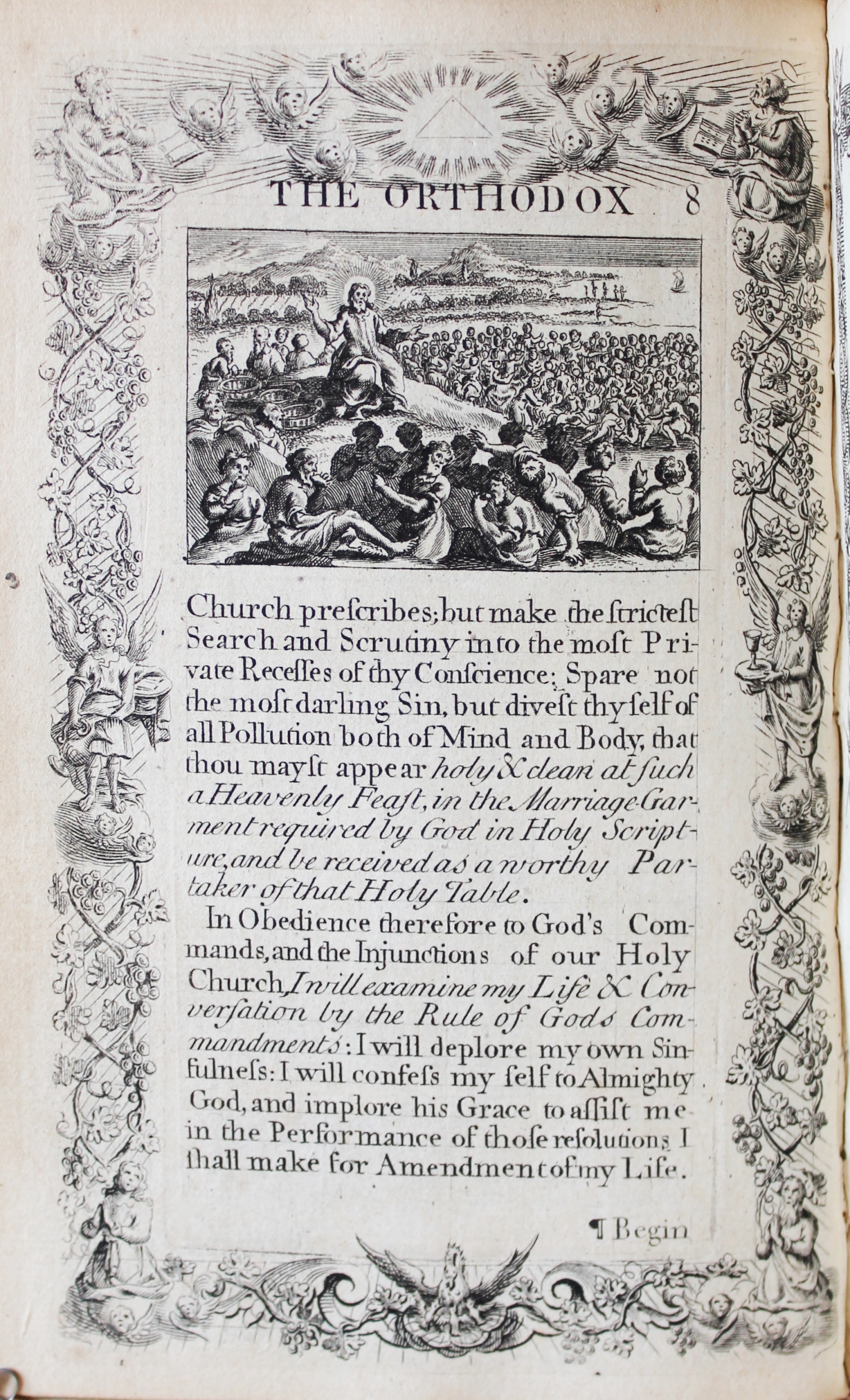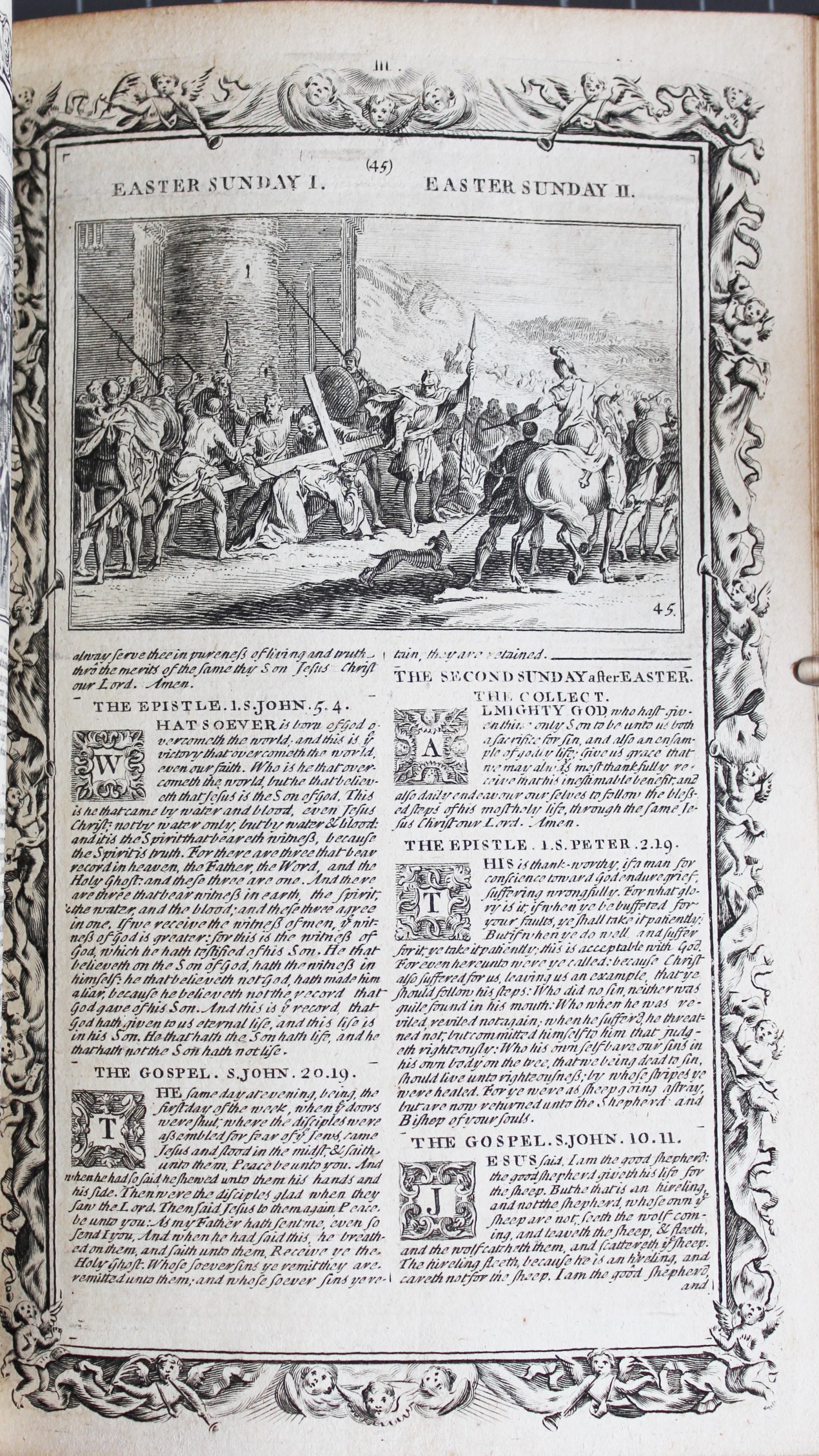 This devotional work, first printed in 1574, was likely not authored by St Augustine. Each page has elaborate woodcut borders depicting Biblical figures: