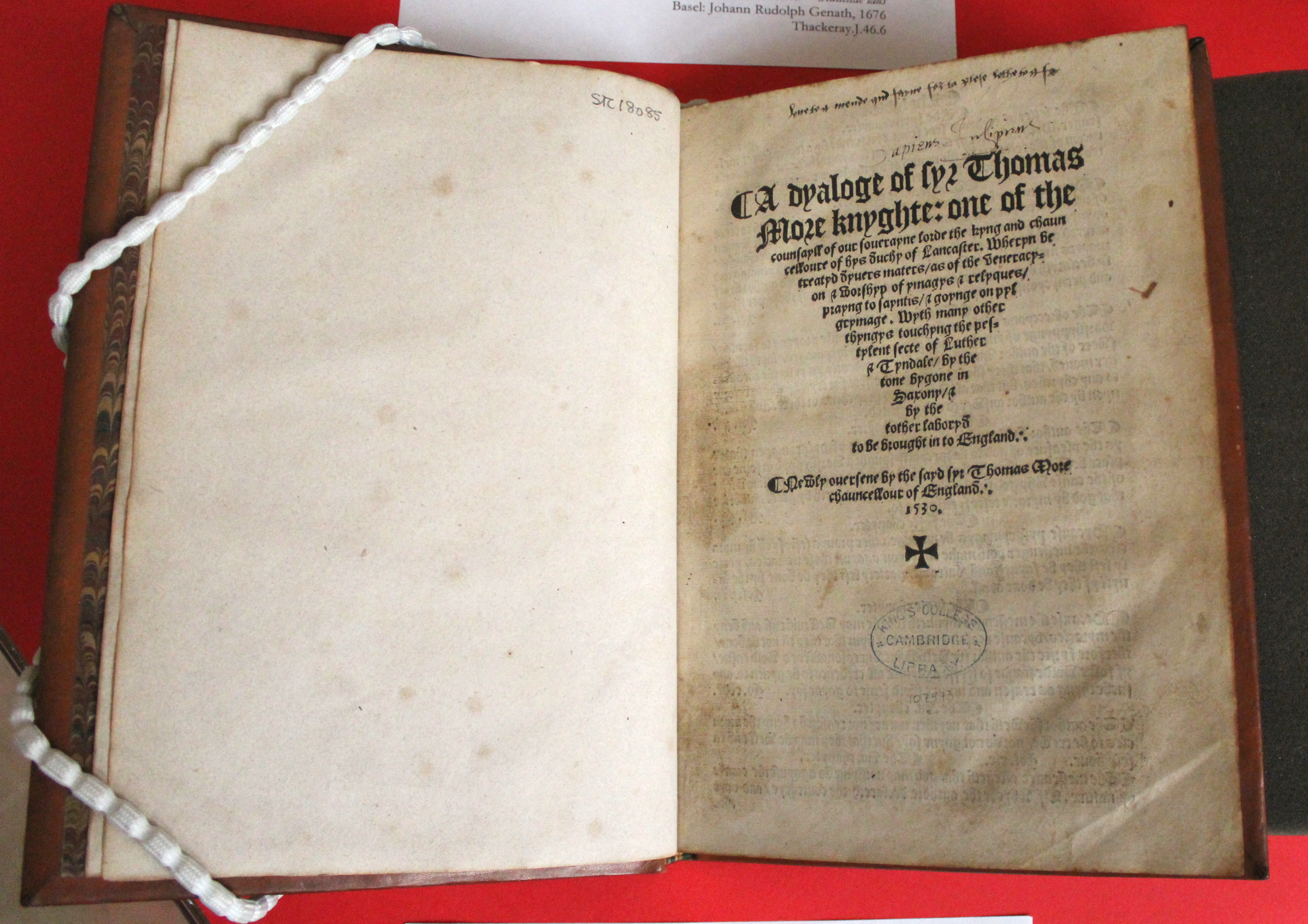 The last exhibition as part of our HLF-funded project was mounted in the beautiful setting of King’s College Chapel in May and June 2018, and it featured books from the theology section of George Thackeray’s library. When he died in 1850, he left his black-letter divinity books, mostly printed between 1530 and 1580, to King’s in his will (some 165 volumes). His daughter Mary Ann Elizabeth bequeathed the rest of her father’s library to the College in 1879. Over 22,000 people visited the Chapel in May and June, but for those who did not have the opportunity to see the exhibition, we provide here some selected highlights.