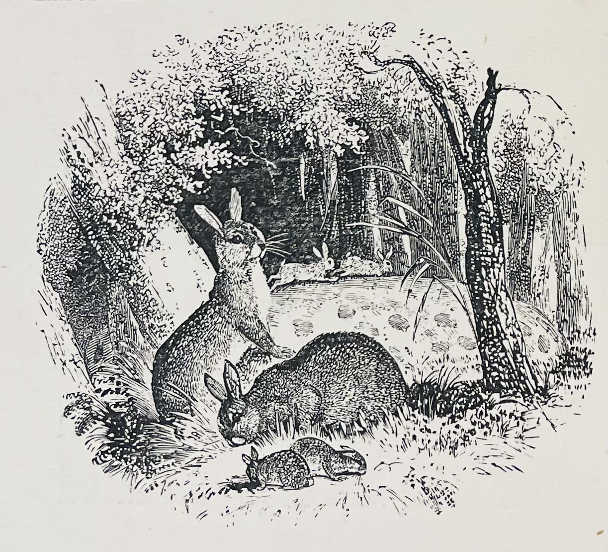 Rabbits also appear in books intended to educate children about the natural world and its inhabitants. My Own Annual: An Illustrated Gift-Book for Boys and Girls edited by Mark Merriwell, has a chapter entitled “Rabbits, hares and ferrets”which informs us that rabbits hail originally from Spain, and that Cambridgeshire is amongst the counties of England where they are most common.