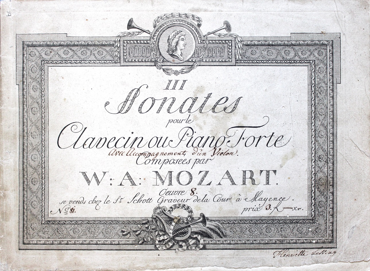 Wolfgang Amadeus Mozart, III sonates pour le clavecin ou piano forte, avec accompagnement d’un violon: œuvre 8. (Mainz: Schott, ca. 1789. Rw.13.88)