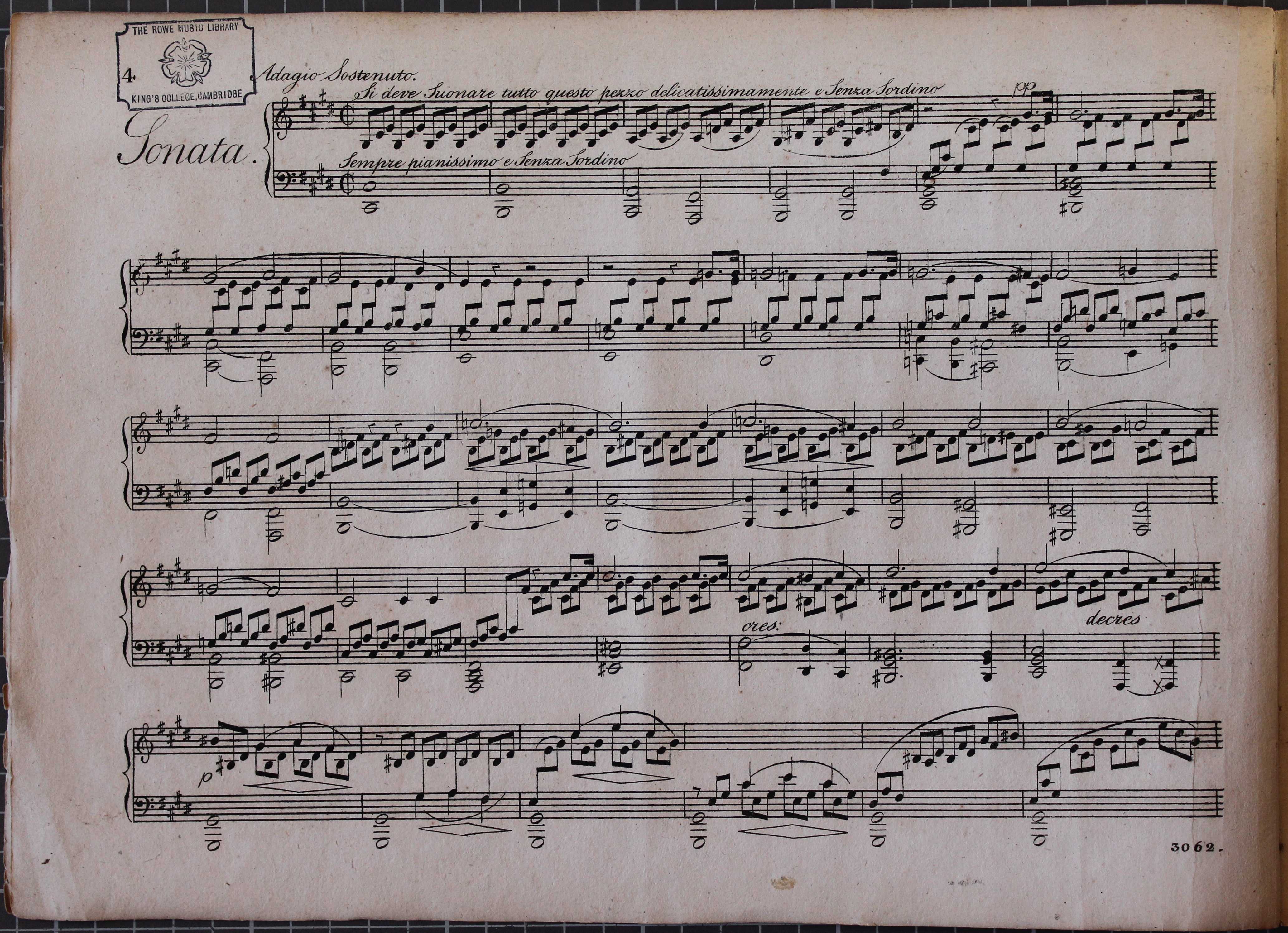 Sonata quasi una fantasia per il piano-forte [Moonlight Sonata]. Shelfmark: Box D.1.1. Opening of first movement.