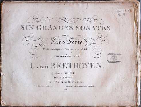 Six grandes sonates pour le piano-forte, violon obligé et violoncelle ad lib (Bonn: N. Simrock, [1806]). Shelfmark: Rw.19.59. Title page