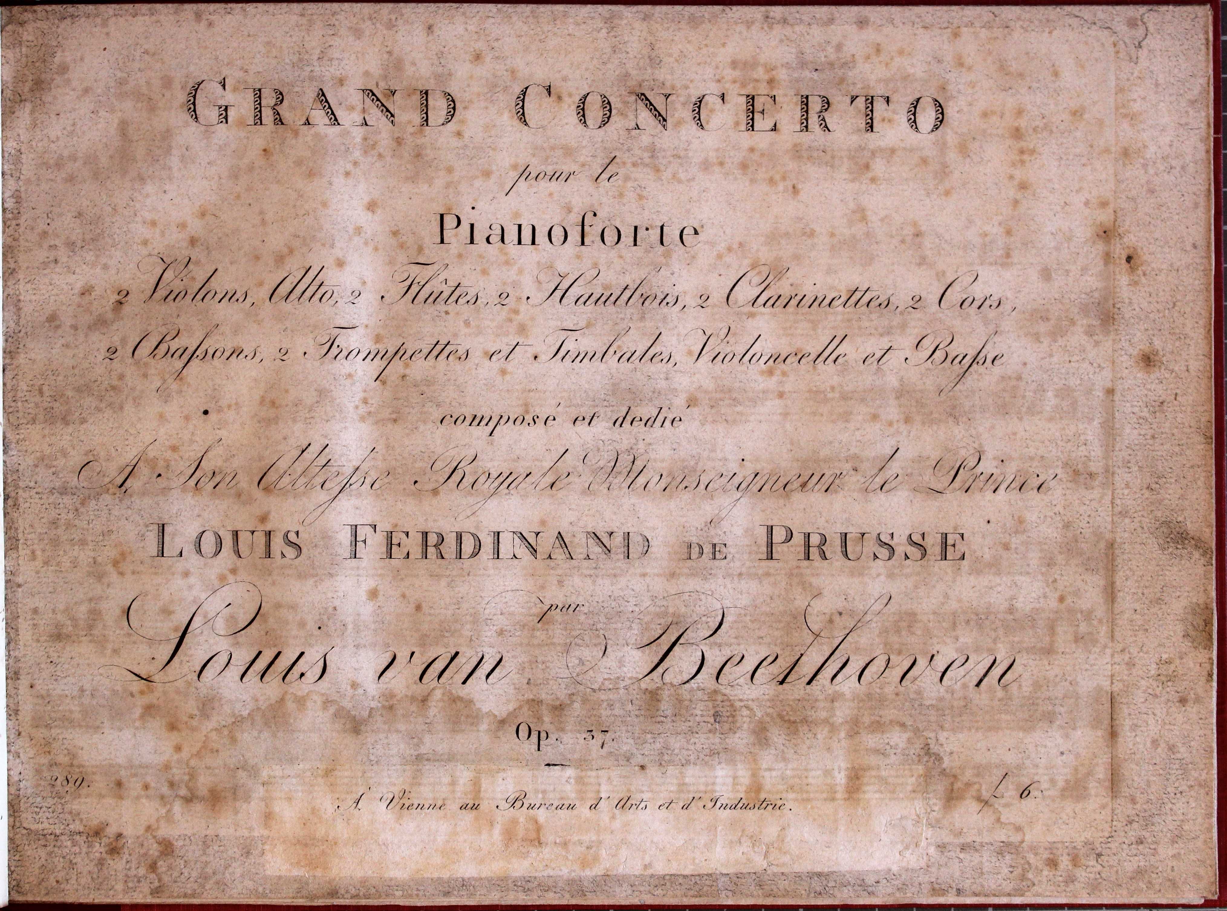 Piano part of Grand concerto pour le pianoforte … Op. 37. (Vienna: Bureau d’Arts et d’Industrie, [1804]). Shelfmark: Rw.51.78. Title page