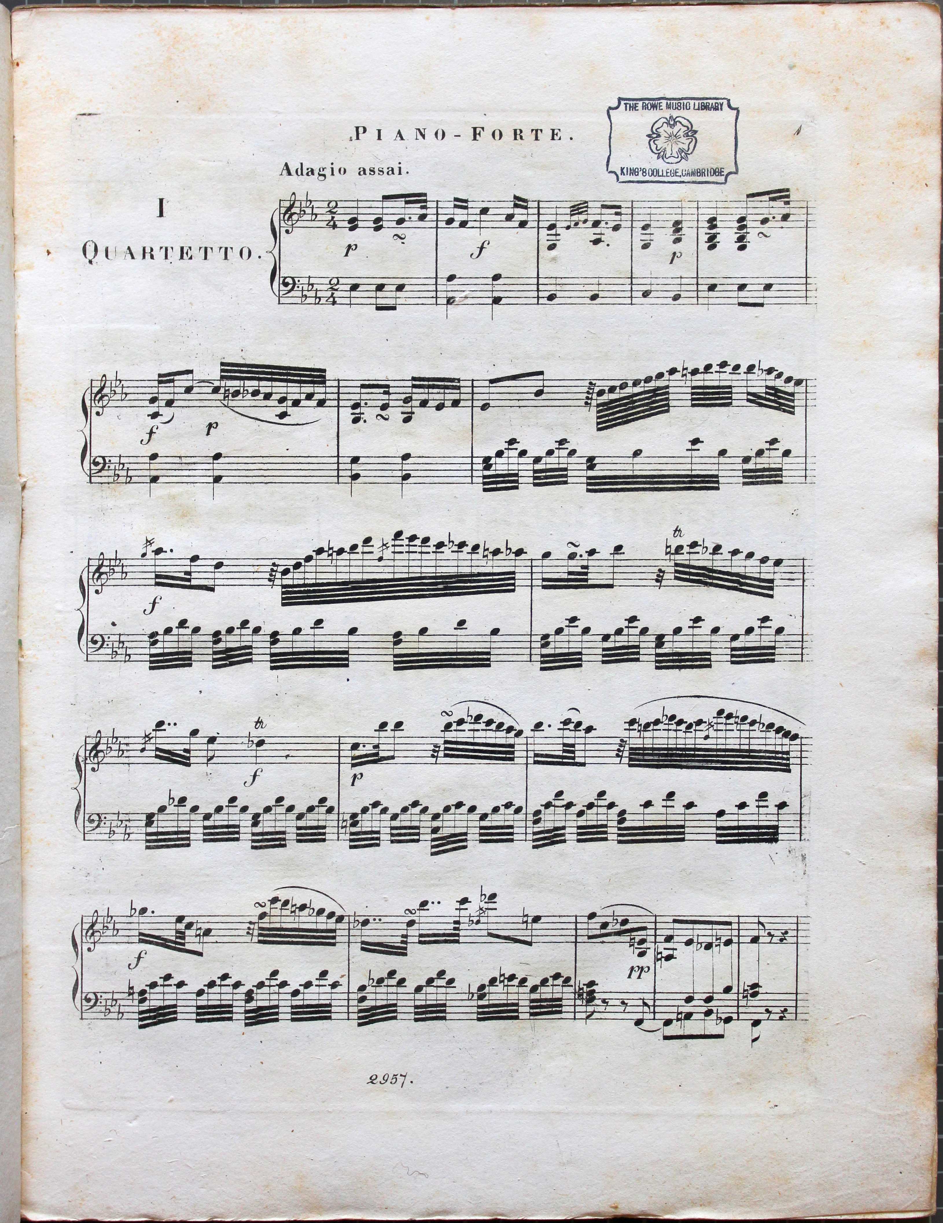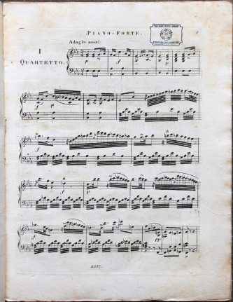 Trois quatuors originaux pour pianoforte, violon, alto et violoncelle. Shelfmark: Rw.30.113-6/1-3. Quartet I, Piano part.