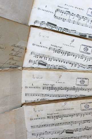 The op. 130 string quartet was published simultaneously as score and parts by Artaria in May 1827, shortly after Beethoven’s death. This was unusual and was remarked upon in many early reviews which pointed out that access to a full score was important because, unlike the op. 18 string quartets for example, this was music that needed to be studied, and not merely played or listened to. Written in the second half of 1825, the quartet’s original final movement was the Grosse Fuge (later designated op. 133), which was substituted for a new Allegro final movement after the quartet’s premiere in March 1826.