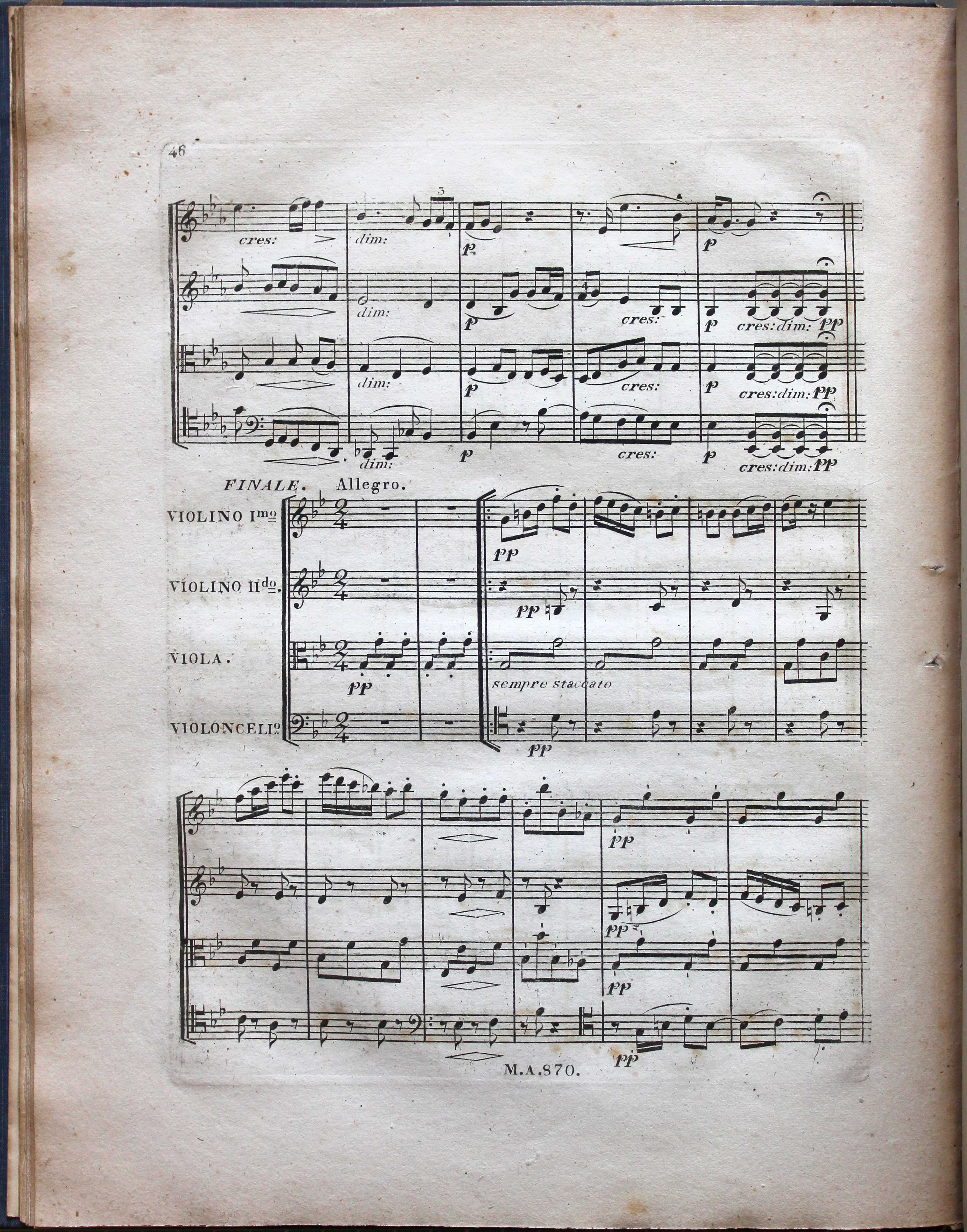 Troisieme quatuor pour 2 violons, alte & violoncelle … Oeuvre 130. (Vienna: Maths. Artaria, [1827]). Shelfmark: Rw.105.67. Finale (opening)