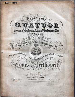 Troisieme quatuor pour 2 violons, alte & violoncelle … Oeuvre 130. (Vienna: Maths. Artaria, [1827]). Shelfmark: Rw.105.67. Title page
