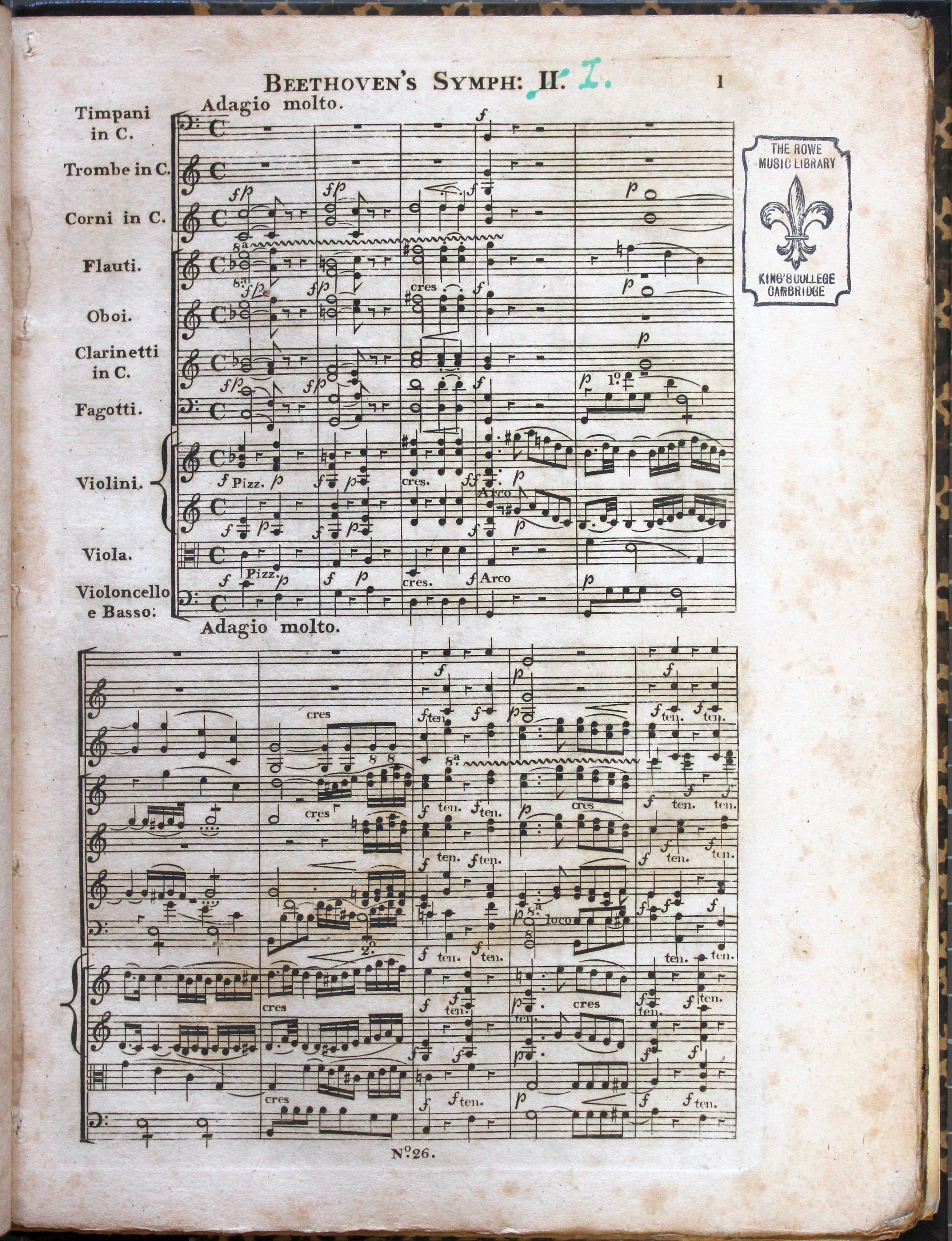 A compleat collection of Haydn, Mozart, and Beethoven’s symphonies … Beethoven’s Symph[onies] I-III. Shelfmark: Rw.75.BEE.1-3. Opening of First Symphony