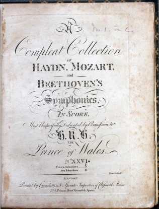 A compleat collection of Haydn, Mozart, and Beethoven’s symphonies … Beethoven’s Symph[onies] I-III. (London: Cianchettini & Sperati, [1808–1809]). Shelfmark: Rw.75.BEE.1-3. Cover