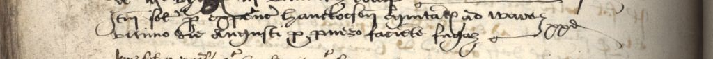 Item solutum pro expencis hanckocson equitandi ad ware ultimo die Augusti pro puero faciente fugam xx d
