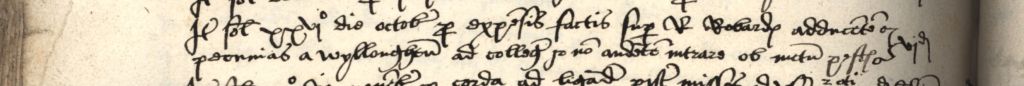 Item solutum xxvio die octobris pro expensis factis super R Robardes adducentem pecunias a Wylloughtun ad collegium & non audentem intrare ob metum pestis. vj d
