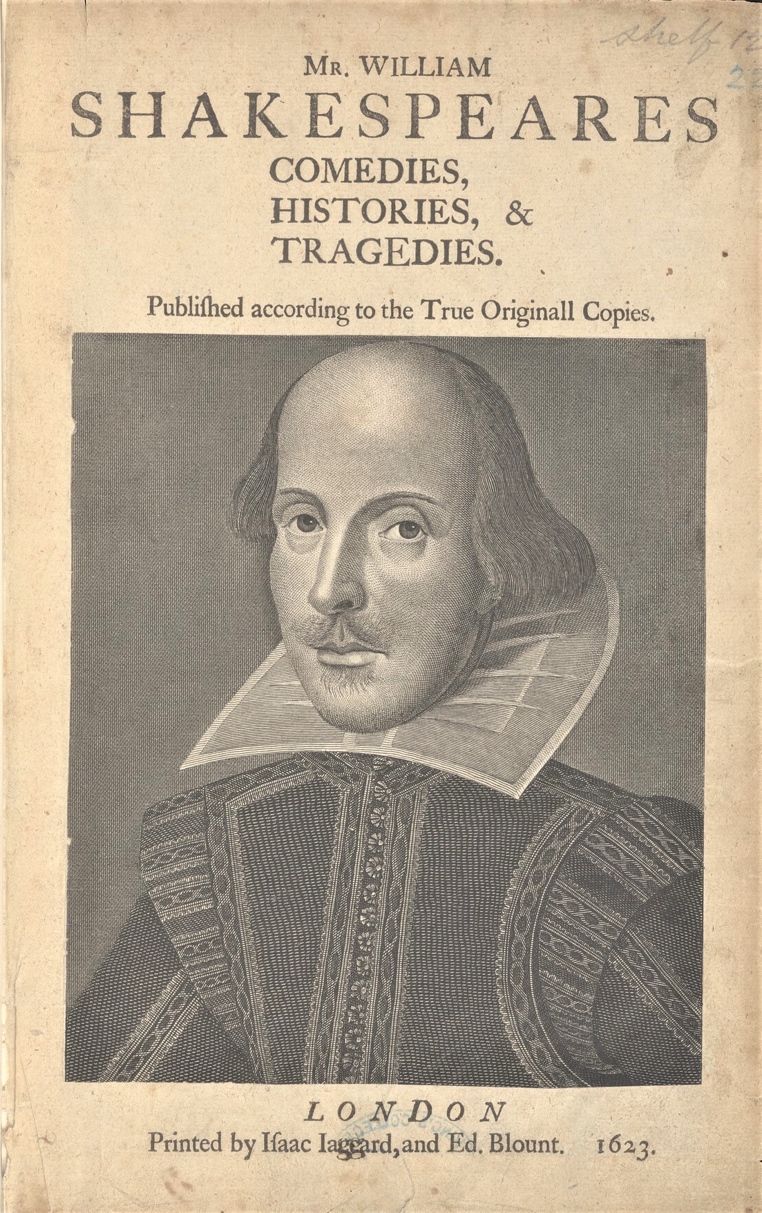 Title page of Mr. William Shakespeares Comedies, Histories, & Tragedies (London: printed by Isaac Iaggard, and Ed. Blount, 1623; Thackeray.38.D.2).